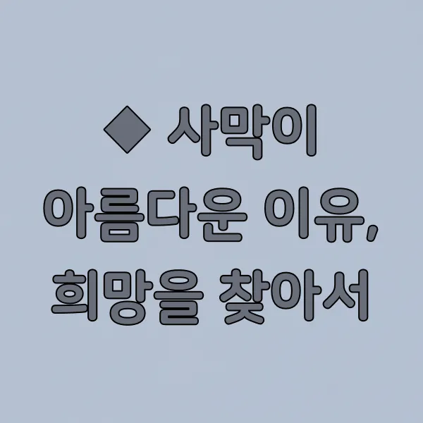◆ 사막이 아름다운 이유, 희망을 찾아서